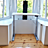 Dieser höhenverstellbare Schreibtisch ermöglicht es, sowohl sitzend als auch stehend zu arbeiten. Er ist maßgefertigt und passt sich perfekt dem Erker an, um den Raum optimal zu nutzen.