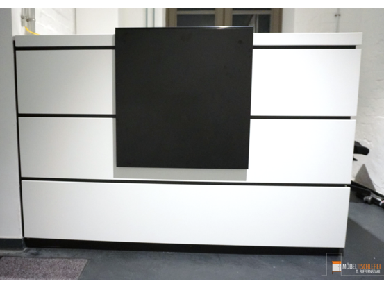 Dieser hochwertige Empfangstresen wurde speziell für eine IT-Firma entworfen und vereint modernes Möbeldesign mit funktionaler Eleganz. Die kontrastreiche Schwarz-Weiß-Optik verleiht dem Empfangsbereich eine zeitlose, professionelle Ausstrahlung. Als maßgefertigte Möbellösung fügt sich der Tresen perfekt in das moderne Arbeitsumfeld ein.