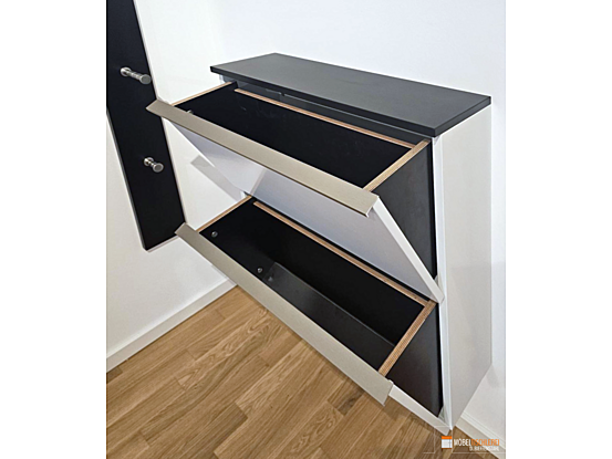 Diese stilvollen Flurmöbel im klassischen Schwarz-Weiß-Kontrast setzen auf ein reduziertes Design und fügen sich harmonisch in den Raum ein.