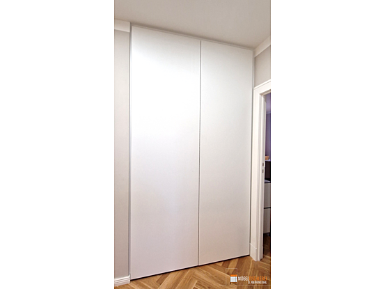 Dieser Flurschrank nutzt jede Ecke optimal – perfekt für kleine Wohnungen und Nischen. Er verbirgt sogar geschickt die Waschmaschine, sodass der Flur ordentlich und funktional bleibt.