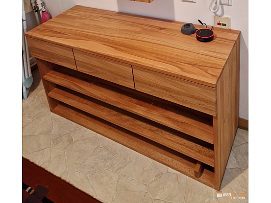 Diese Schuhkommode aus massiver, naturgeölter Kernbuche bietet Platz für Schuhe und kleine Dinge dank praktischer Schubkästen.