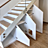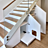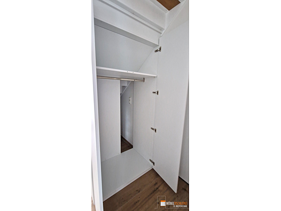 Dieser Treppenschrank in Weiß fügt sich perfekt in den Raum unter der Treppe ein. Mit einem seitlichen Garderobenschrank und einem integrierten, herausziehbaren Bereich für das Schmusekätzchen bietet er nicht nur Stauraum, sondern auch eine praktische Lösung für die Pflege des Haustiers.