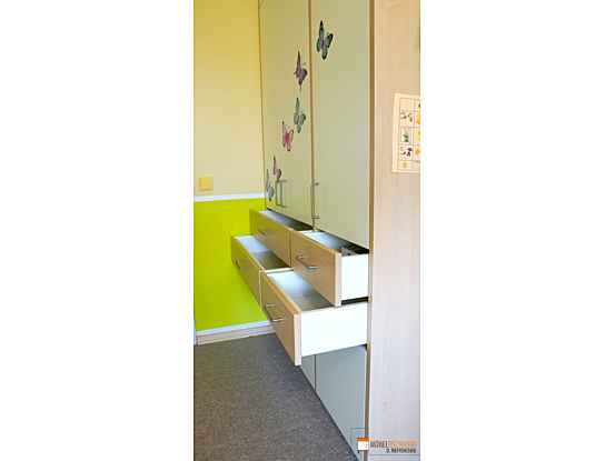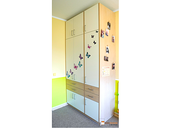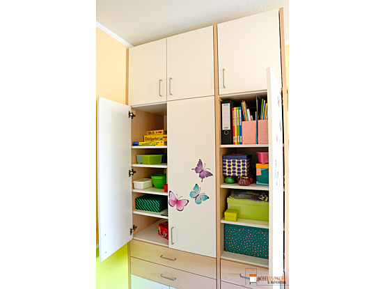 Dieser deckenhohe Kinderkleiderschrank aus Ahorn ist das Highlight im Kinderzimmer. Schlicht und multifunktional, lässt er sich dank variabler Einlegeböden und einer Kleiderstange flexibel an die Bedürfnisse anpassen. Ob als Aufbewahrung für Bastelmaterialien oder als Kleiderschrank – mit eigenen Kreationen wird er zum persönlichen Möbelstück und erfüllt jeden Zweck.