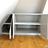 Dieses maßgefertigte Sideboard ist die perfekte Lösung für eine Nische mit zwei Dachschrägen. Das stilvolle Design fügt sich harmonisch ein und schafft gleichzeitig praktischen Stauraum für Bücher, Dokumente und andere persönliche Gegenstände - ideal für ein aufgeräumtes und modernes Wohnambiente.