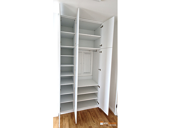 Dieser weiße Flurschrank fügt sich perfekt in eine vorhandene Nische ein und bietet viel Stauraum für Taschen, Schuhe und Accessoires. Mit einer integrierten Kleiderstange für Jacken und Mäntel sorgt er für Ordnung und eine übersichtliche Aufbewahrung. Das schlichte Design passt sich harmonisch in den Flur ein.