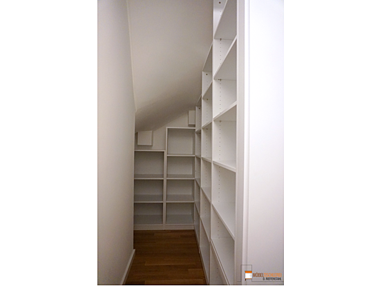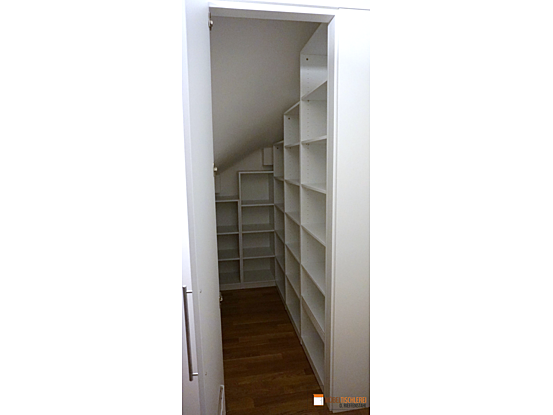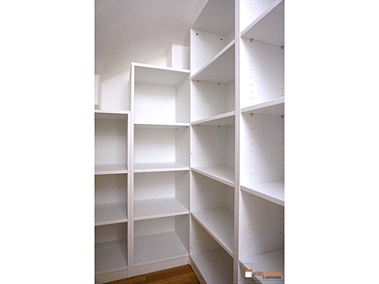 Selbst unter der Treppe lässt sich durch maßgeschneiderte Regale effizient Stauraum schaffen. So wird ungenutzter Platz clever in einen praktischen Abstellbereich verwandelt, der für Ordnung sorgt.