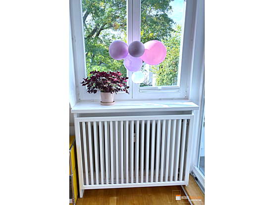 Diese Heizungsverkleidung aus weiß lackiertem Massivholz bringt nicht nur ein harmonisches Gesamtbild in den Raum, sondern kaschiert unauffällig die Heizkörper. Das dezente Design fügt sich nahtlos in die Einrichtung ein und sorgt für eine stilvolle Optik.
